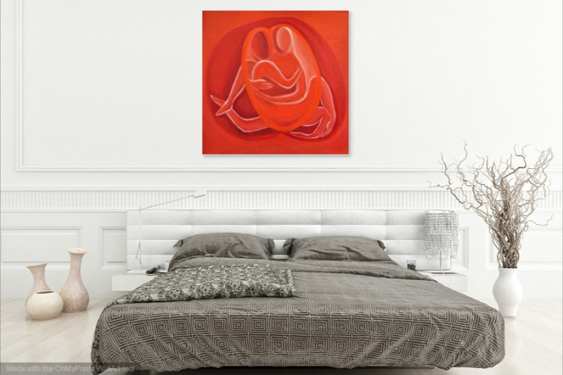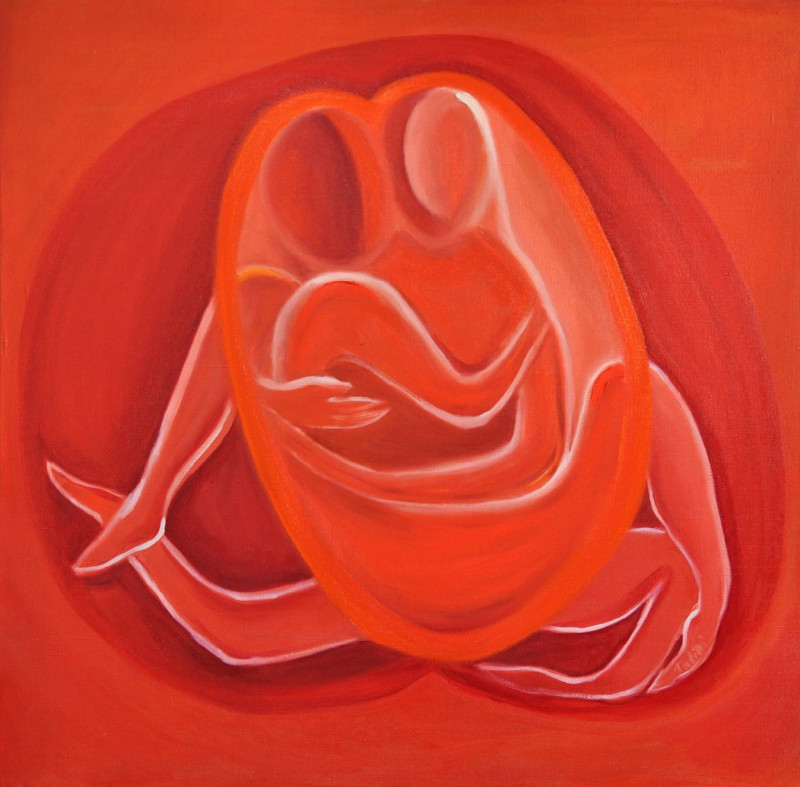 The color of joy, desire, and enthusiasm. Orange also represents joyful admiration and attraction. If you choose orange as the main color for the recipients, you want your love to be passionate, full of elevation, joy, and adventure, and to always go up and never get down. In our painting Couple I, the couple achieves a sense of ecstasy and eternally embraces each other. This painting would be suitable for you if you love to be high on emotion.