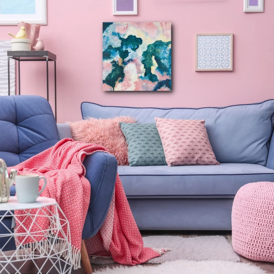 Too much pink can weaken your emotions and self-worth, so adding cold colors like blue or dark green can provide a practical balance in your space.
