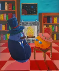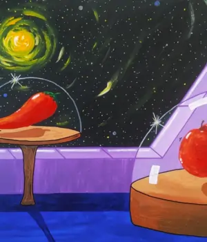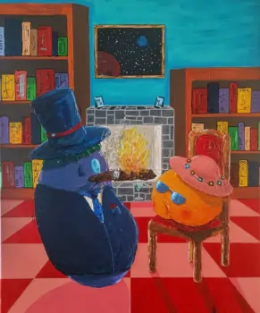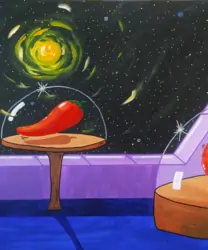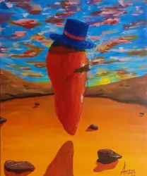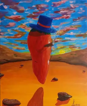 The four artworks displayed in this Rotterdam exhibition at by FLIPP are by the incredible artist Anže Ivanuš. All the pieces on display are currently for sale, ranging from 800 € to 1,340 €, and can all be found on on our website (try our search function, or browse Anžo's other works). His 4 artworks, Three generation, A taste of future, The last Chili,and, Celebration by the fire, exhibit another level of surrealism.