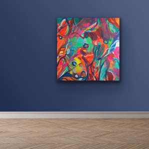 With her vibrant abstract paintings, Valentine is able to draw you into a world of emotion and exploration. Due to her experiences living abroad, she cultivated a desire keep improving and further developing herself. As can be seen through her paintings, Valentine takes an energetic approach to life. Get to know Valentine more here.