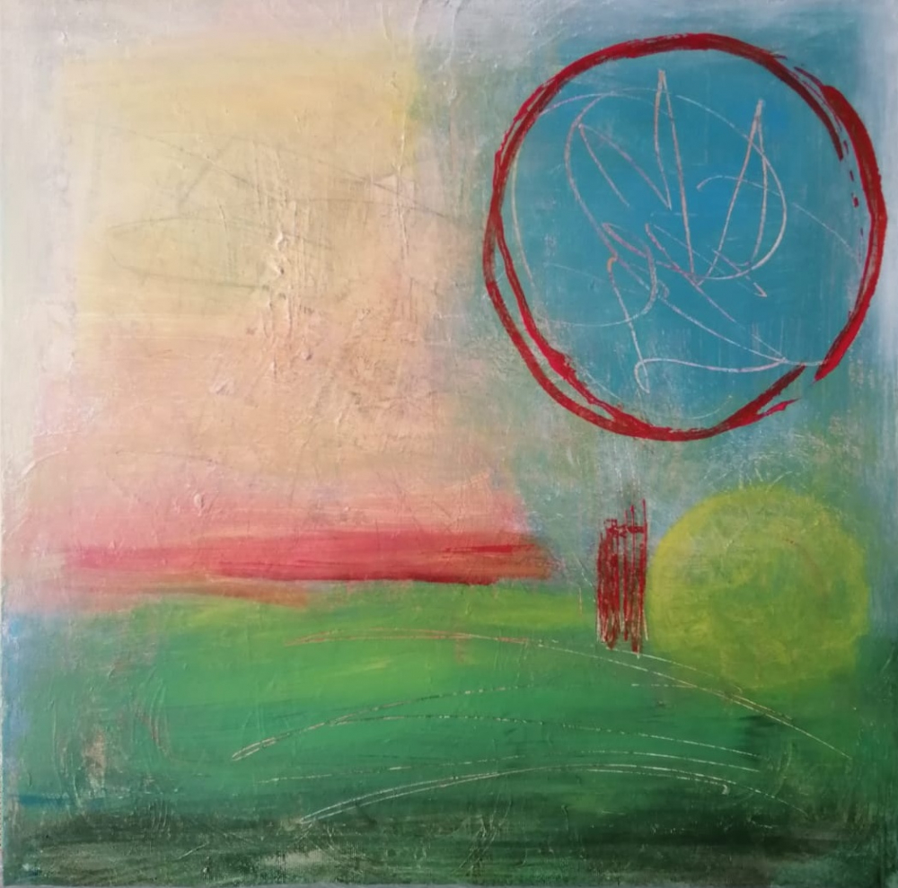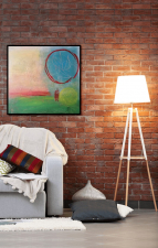 This artwork is an acrylic painting made on canvas with abstract style. With its great size of 50x50 cm, it would fit perfectly in a smaller space or a gallery wall.