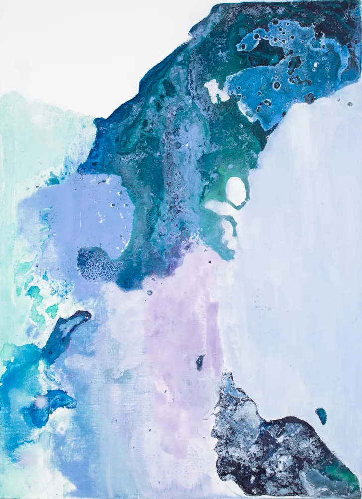 Space satellites capture the abstract beauty of Earth. Icebergs at the North Pole, mountains, oceans, and seas create an unreal composition. I like to imagine new planets and their surface with all geological formations of the lithosphere. Then, I recreate it on canvas.