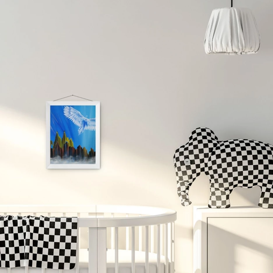This surrealist painting of an angel beyond a hill works as an extraordinary piece that will liven and elevate the energy of any room it’s in. The combination of a spiritual figure and natural environment will encourage viewers’ sense of fantasy and surrealism.