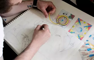 He was born and raised on a farm, where he soon began to pursue art. Nature and all the stars above that surrounded him helped him to develop a vivid imagination. They are a constant in his art. By constantly reading, discovering, scribbling, and getting the information he could easily get lost in the areas that surrounded him. So nature gives him depth and the city gives him width.