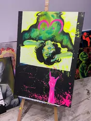 The second collection is about colors. It shows and points out the depth of the structure of the human body with a balance of expressive colors and blackness. The use of paints in neon colors gives the paintings a new, interesting quality.