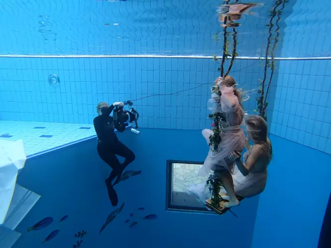 Leaping into an unknown environment she started to create images with the help and support of her friends happy to be either in the water in front of her lens or behind the scenes assisting with anything needed to be done. It was a natural step for Lucie to connect being in the water to express her fantasies through photography. Underwater it was easier to create landscapes where people could fly and worlds could be upside down. Persistent through her work, she specialized in underwater portraits but continued to feed her creative soul with her personal projects.