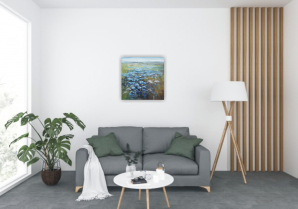 This original oil painting is made on stretched cotton canvas. Size is 50x50cm. Depth 1 cm. Canvas is gallery wrapped and painted on the sides, so the painting could be hang as it is without a frame if preferred.
