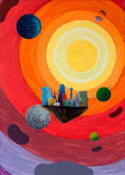 Anžo is a Slovenian artist who focuses on creating surrealistic paintings with cubism. Born and raised on a farm, he was surrounded by nature, which helped develop a vivid imagination. With constant reading, discovering, and scribbling, he gets lost in his surroundings while painting. Get to know Anžo more here.