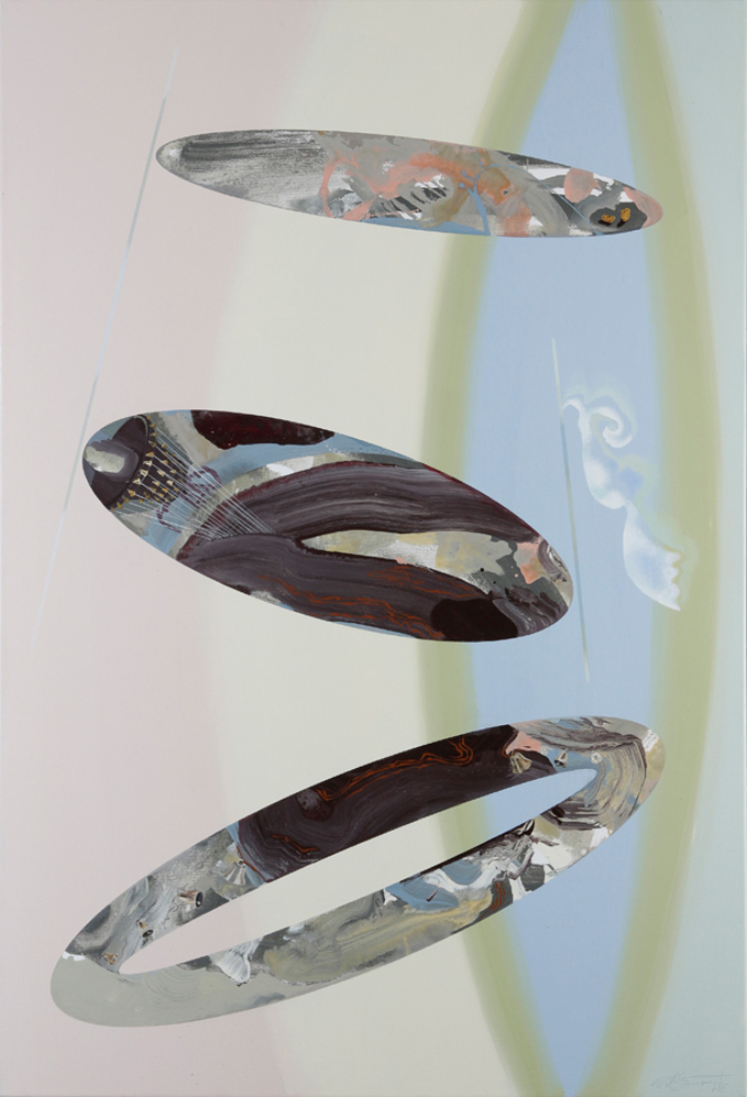 This cycle of paintings is about the meaning of human life. About leaving a trail of universal earthliness, and through personal, spiritual, and individual experience connect with the universe on a deeper level. Each artwork captures different eclipses of the universe, in which there are various earthly or dreamy motives that interconnect with the celestial elements. Around the borders of eclipses, there are subtle lines- whether we call them revelation, spirit, or energy- that basically create an idea of a cosmic funnel through which this interconnection between universe and earth flows.