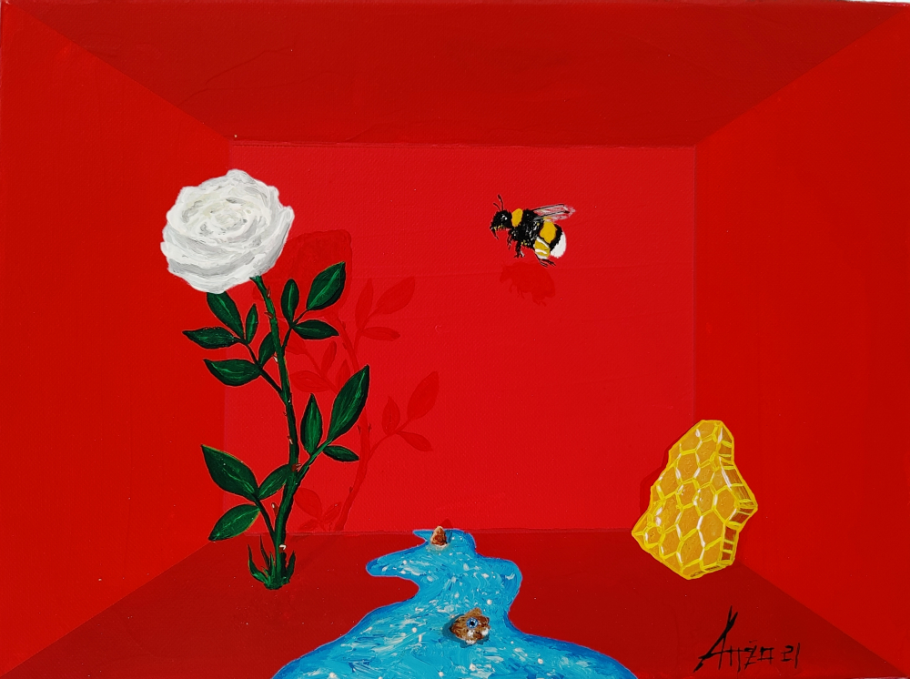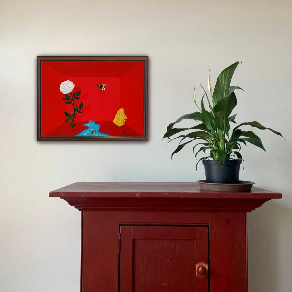 The surreal painting “Beyond” comes in the size 36x27cm and fits perfectly in any space. With this painting the artist intends to show that beyond everyone's thinking, we are all simple creatures gravitating towards our inner wishes.
