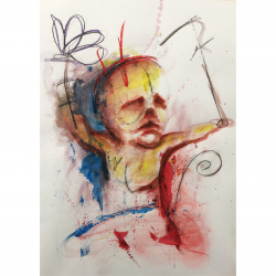 This piece was created when my personality changed a lot. This artwork embodies this period of time. The drawing is full of energy and colours against a neutral background, which gives a vibrant energy.