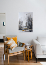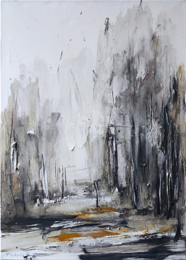 It is not always only the colors in a picture that determine whether the artwork arouses interest and curiosity. It can also be an unusual combination of contrast, sharpness and image division, or even the energy flowing in to the artist. In this picture, the colors are not what a bee is supposed to attract, but the contrasts and energy of the artwork. It is the beautiful nature along the Danube where I spend a lot of time in summer and winter. I don't paint the pictures in nature, I bring myself the impressions and use them in the studio. It is the moments that remain in the memory and in the soul.