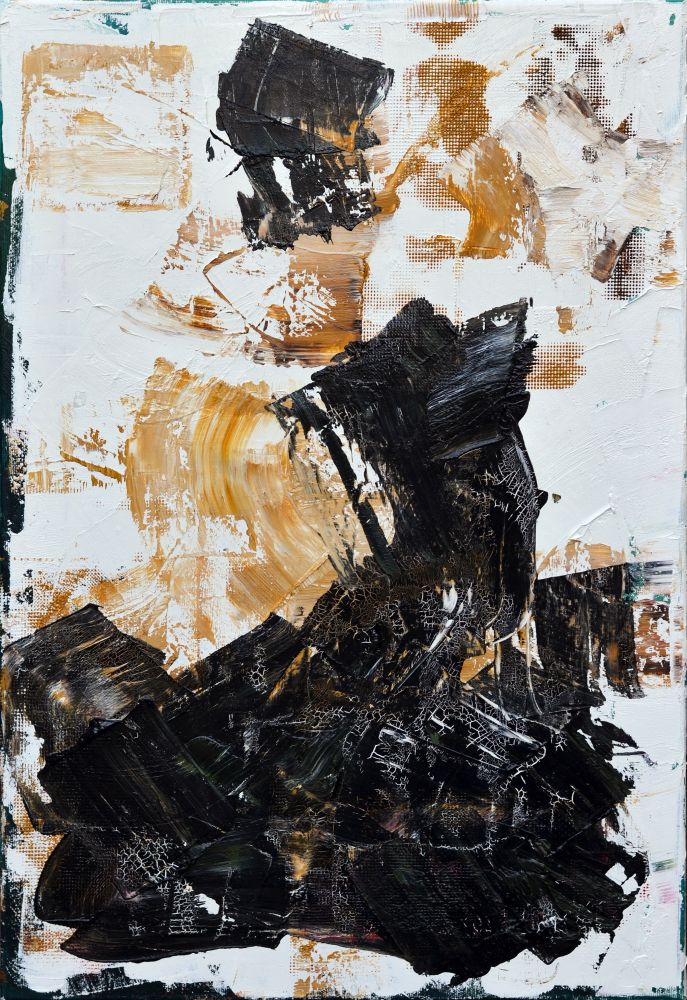 black and yellow, sharp strokes and dull lines, past and future, positive