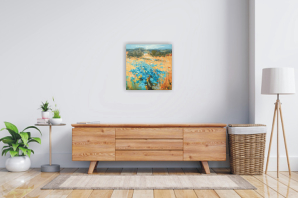 This original oil painting is made on stretched cotton canvas. Size is 40x40cm. Depth 1 cm. Canvas is gallery wrapped and painted on the sides, so the painting could be hang as it is without a frame if preferred.