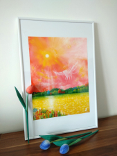By the River Oil painting, paper 300 gr/m2. Painting of landscape full of sunlight.