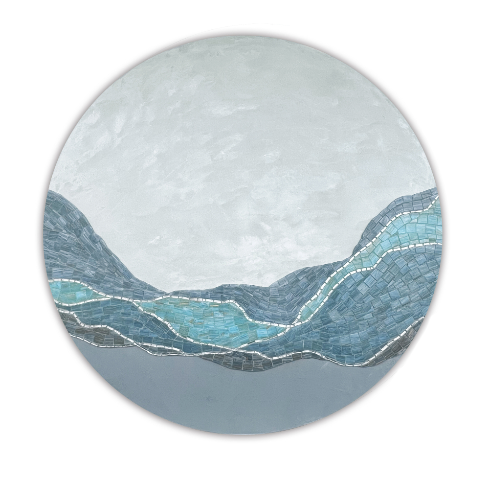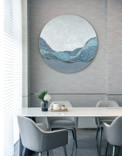 Calm waters is a meditative art panel in blue tones.