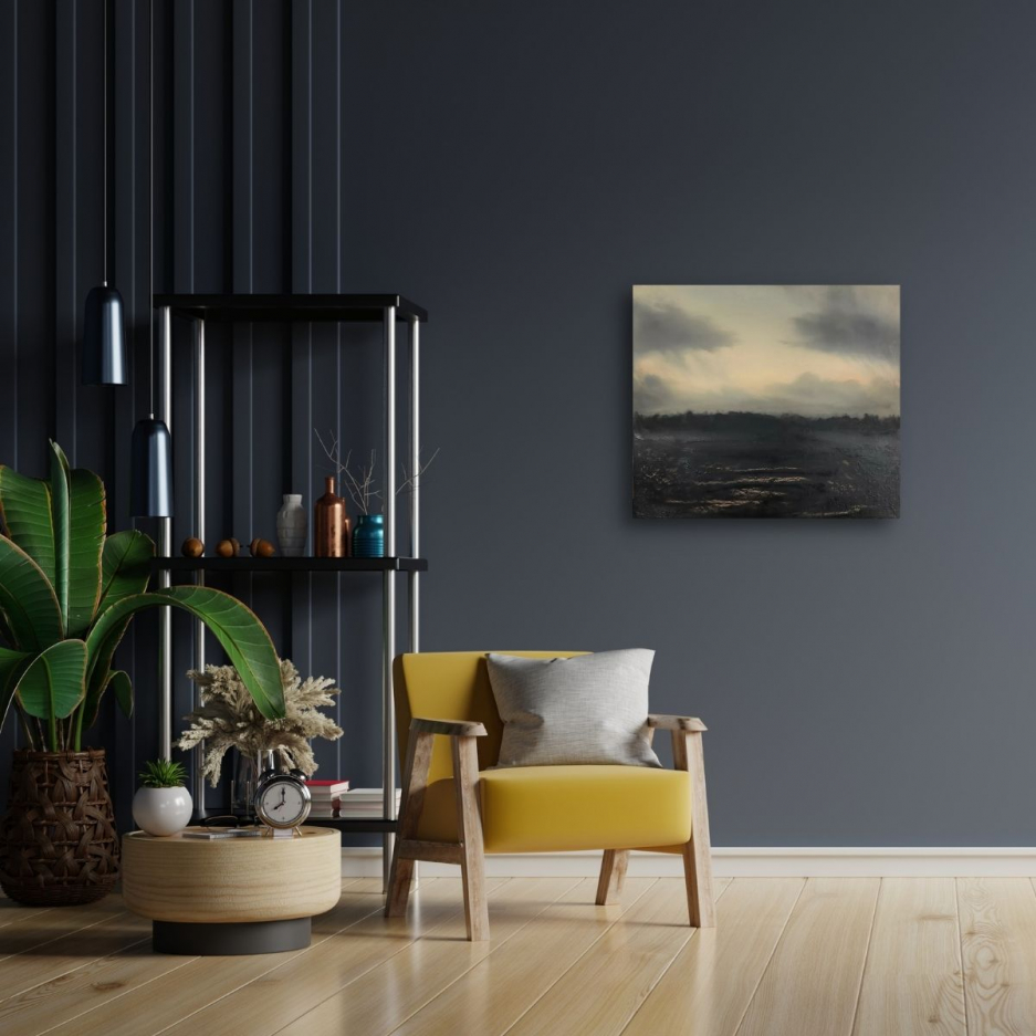This painting is the first artwork of the series “Cloudy days” . The series is inspired by a photo of a cloudy day that the artist took. In this art piece the colours are darker and evoke more strong feelings. Ideal option for someone who loves landscapes and realism.