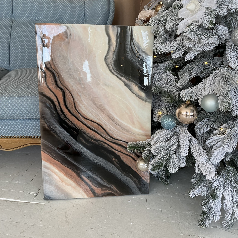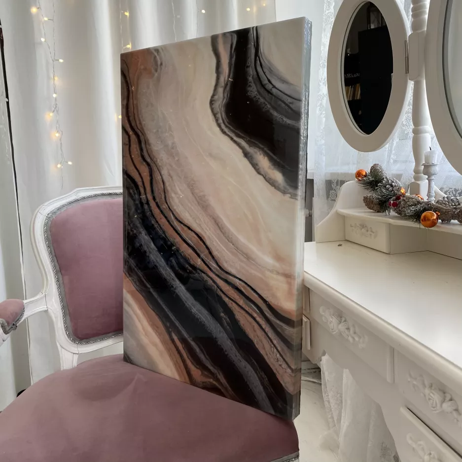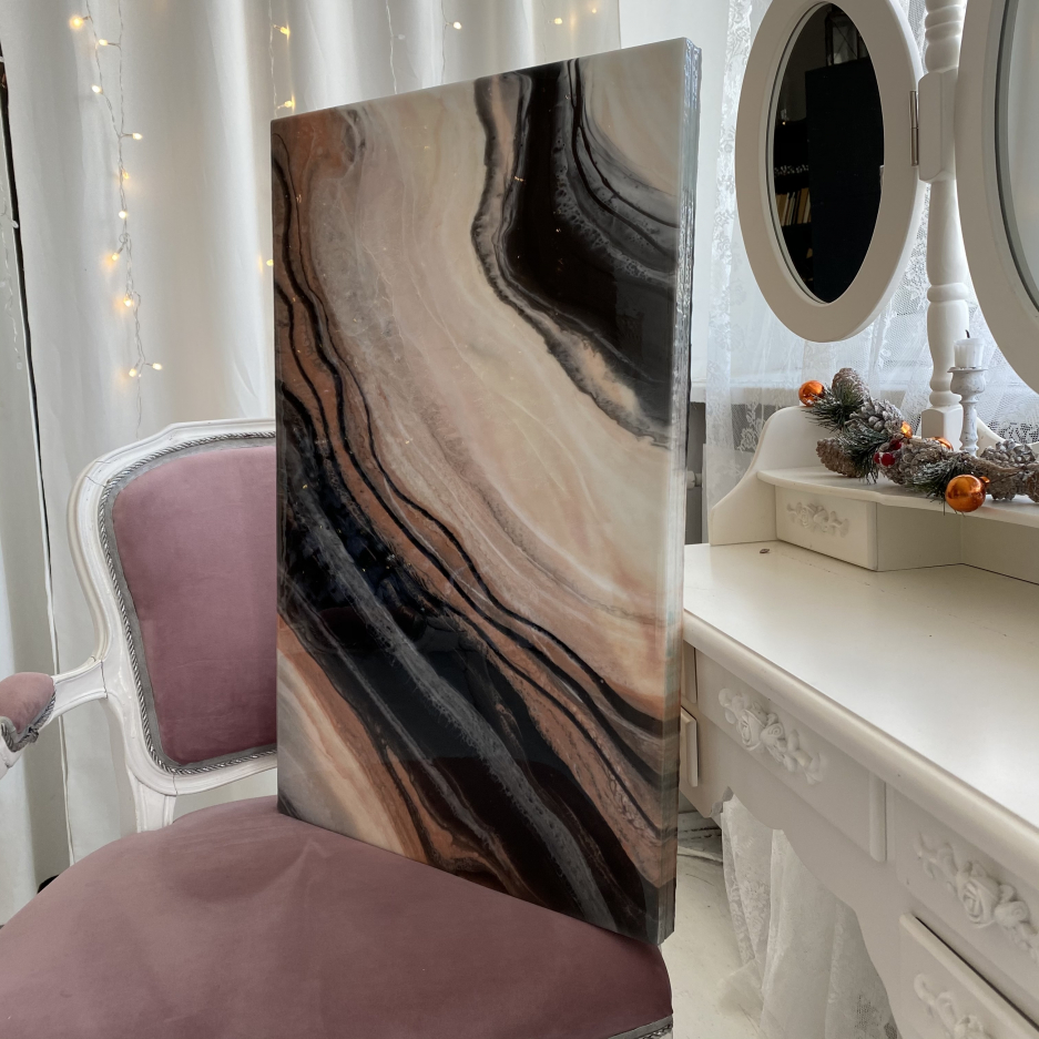 I was inspired to create this painting by the book Coffee with Cardamom by the Polish writer Joanna Jagiello. A wonderful love story, the symbol of which is a fragrant special cup of coffee with cardamom, which became a wonderful memory for lovers. I used epoxy resin for creating natural lines. I think that this painting was created for connoisseurs of natural textures and materials. I hope that this painting will be a good decoration for your home, helps you relax and get aesthetic pleasure. It can be a great present for someone close to you.