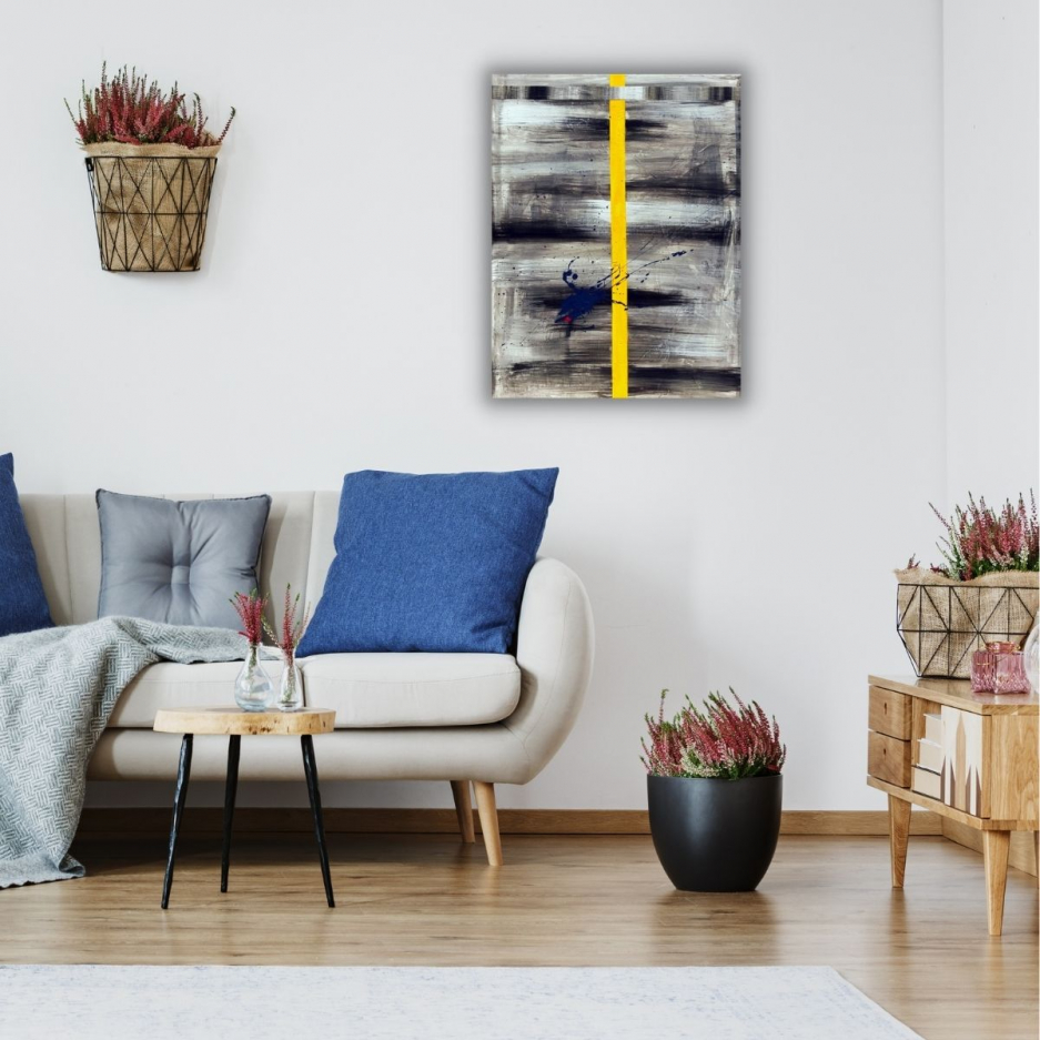 This artwork is part of the series “Coincidences”. This series consists of paintings with modern style and a minimalistic approach.This artwork is made with acrylic paint and masking tape on stretched canvas.