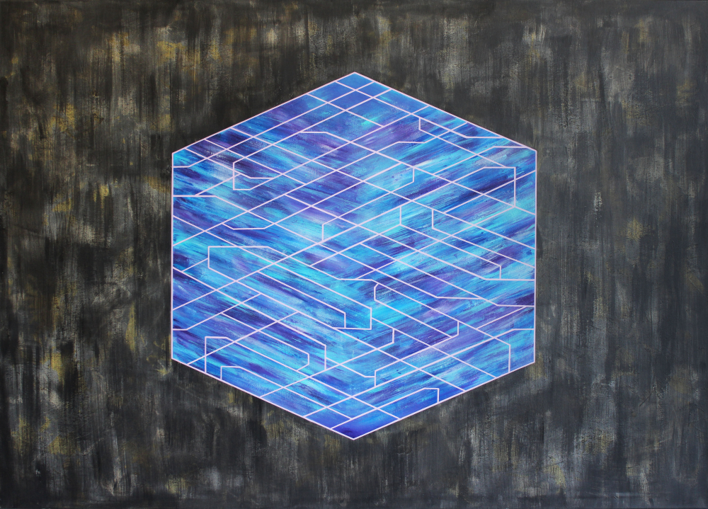 This painting was crucial for the evolution of my work. I discovered two main areas of my interest, geometry, and unique forms of various crystals. The crystals have a geometrical basis, but they originate from nature itself. It is possible to create a wide variety of compositions with the help of precise shapes and lines. The texture and light properties of these objects constantly inspire me with new ideas.