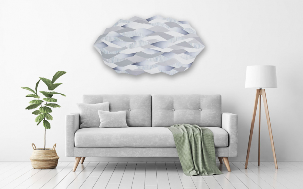 The Crystal reflections series represents a turning point in the process of my work. I discovered the technique of cutting and sculpting my own shaped canvases during my stay at the Hungarian University of Fine Arts in Budapest. Classical painting has been transformed to another level. Painting became an object, which gained it´s own individuality and signature. The surface of crystals creates unique light reflections, which I try to interpret with my own visual poetry.