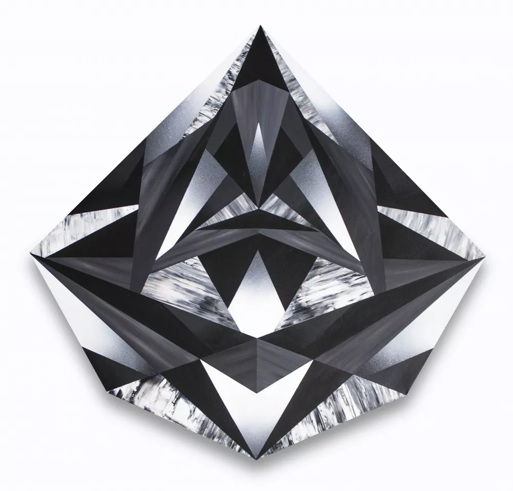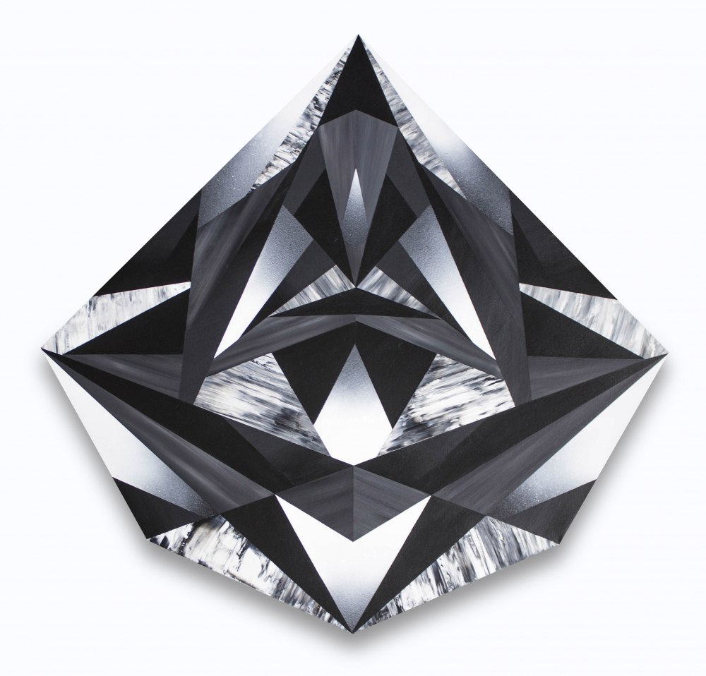 The Crystal reflections series represents a turning point in the process of my work. I discovered the technique of cutting and sculpting my own shaped canvases during my stay at the Hungarian University of Fine Arts in Budapest. Classical painting has been transformed to another level. Painting became an object, which gained it´s own individuality and signature. The surface of crystals creates unique light reflections, which I try to interpret with my own visual poetry.