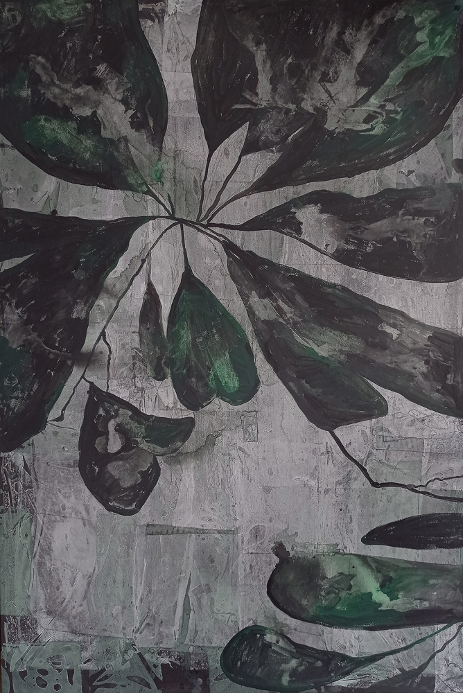 This painting is inspired by nature and its colors give you a mood of monochrome feelings. “Leaves no 3” is a special art piece which is done by using special tissue stamp technique. Thanks to its big size, it can upgrade a space by itself.