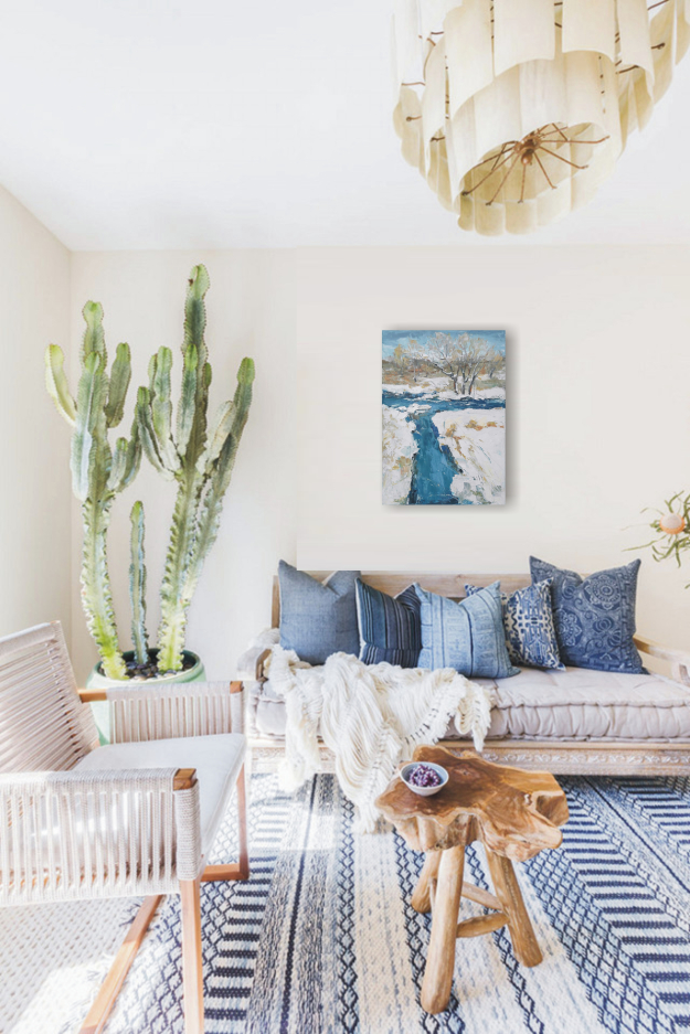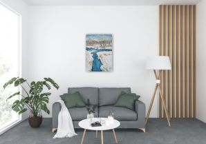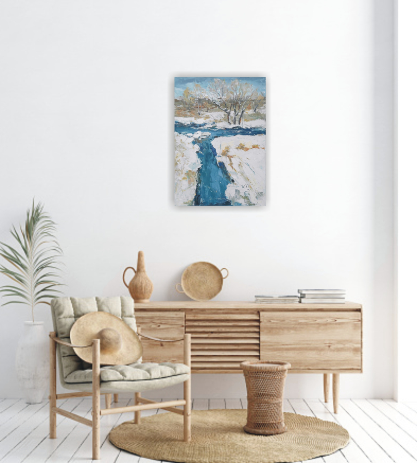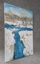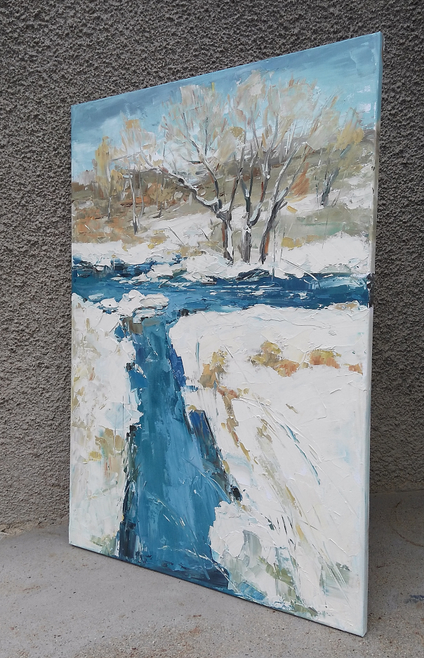 This original oil painting is made on stretched cotton canvas. Size is 70x50cm. Depth 1 cm. Canvas is gallery wrapped and painted on the sides, so the painting could be hang as it is without a frame if preferred.