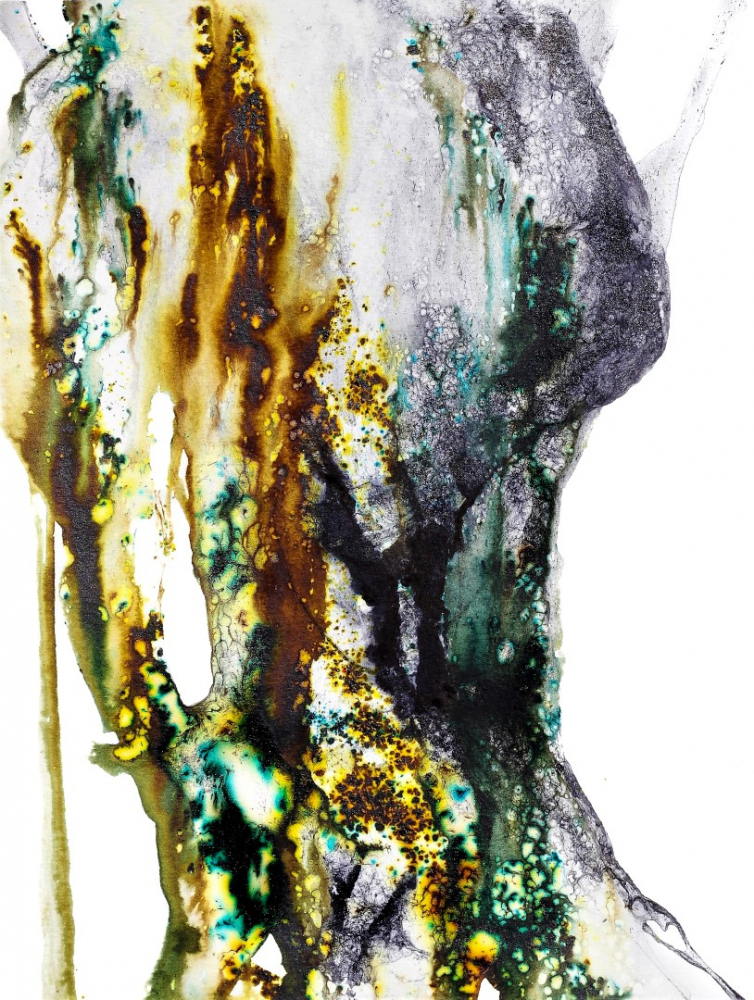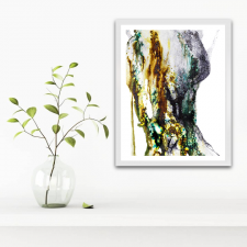 These abstract shapes have a feminine touch, shapes, fluidity. If you look deep enough you may spot a female shape or just feel her energy. A mixture of black ink and walnut-based pigments creates a three-dimensional figure.