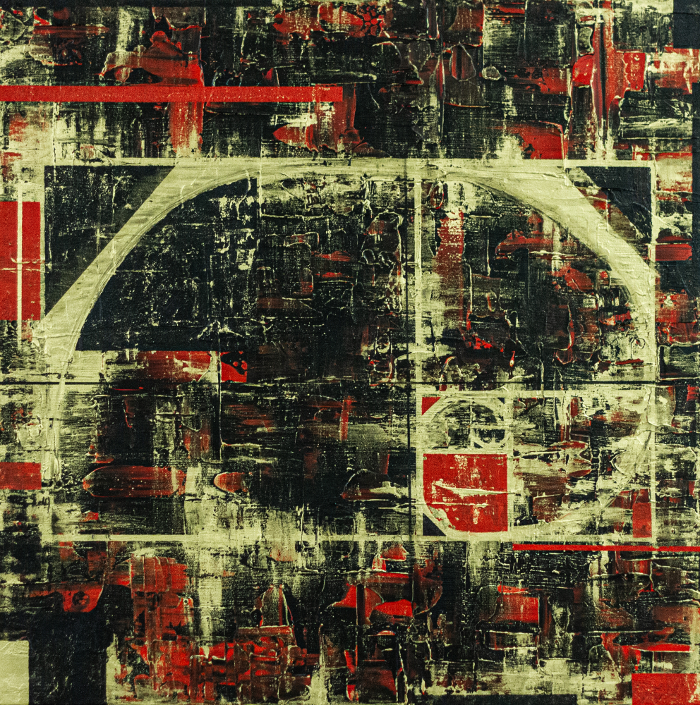 "Fibonacci spiral" Abstract mixed media piece from „Black&Gold collection“