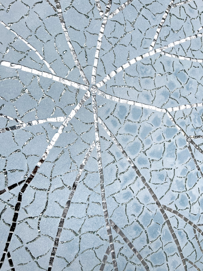 Material: silver mosaic, plaster, mdf board. Ready to hang.