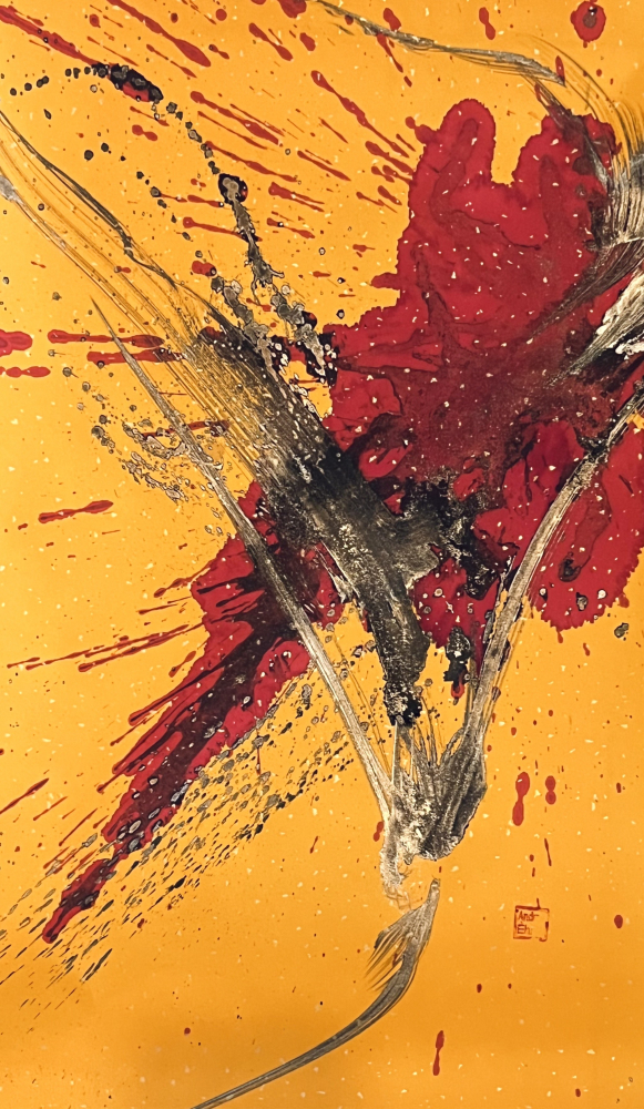 This exquisite calligraphy collection, crafted on traditional Japanese paper scrolls, features the finest sumi ink and delicate golden particles. Each piece explores the themes of freedom and expression, capturing moments of self-discovery—when we find our voice, embrace vulnerability, and confront our truths.