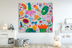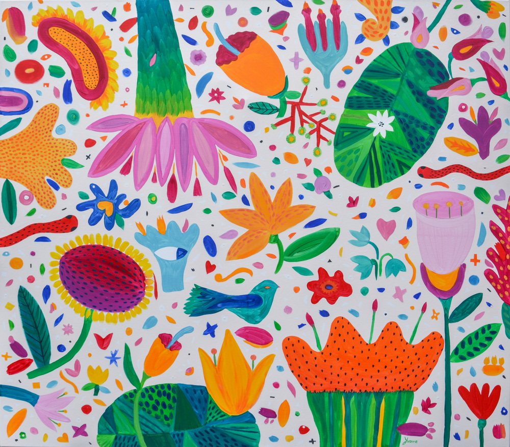 “Garden” is an abstract painting made on canvas with oil and acrylic. The fragrant nature that is illustrated in the artwork and its fresh colors create a playful atmosphere. Ideal choice for the kid’s room or all the adults who want to stay children in the soul.