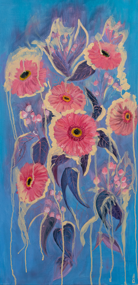 The gerbera oil painting. In my floral paintings, I always aim to convey more than just the flowers themselves.