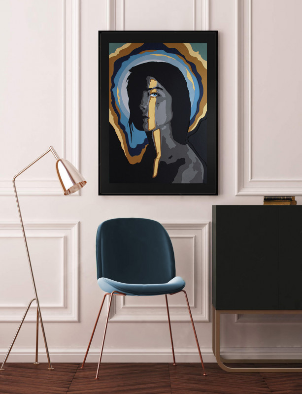 Eyes haven't appeared in my paintings so far. They say a lot about a person without words. Because eyes don't lie: they're windows to the soul. One glare for a thousand words. The woman in the picture look straight at the viewer wherever he moves. What do you feel from her gaze? Calm? Sorrow? Qualms? In her gaze, you will see what you feel yourself. It's just a mirror of your soul, so open your eyes, look inside.