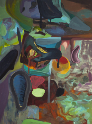 Work inspired by a still life about the body. The body is dismembered to create a composition of shapes and colors. Intense colors are vibrant with life, as if recalling the living organism they talk about.