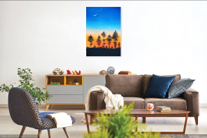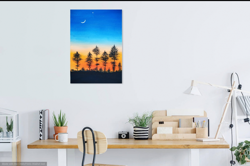 This is the only painting I did during the quarantine in the spring of 2020. I am so lucky to have a forest just beside my house, so every evening I was walking in the forest, grateful that I can be there. On one of those evenings, I was staring at such a magical sky, that day I did not have my mobile phone with me, so I kept staring to remember as much as possible to come home and just paint.
