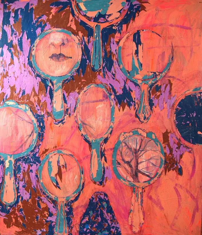 The painting tells about stopped time, stopped aging, and losing our beauty, as we always check ourselves in the mirror to be sure we are still beautiful and young. The illusion of beauty that lasts forever.
