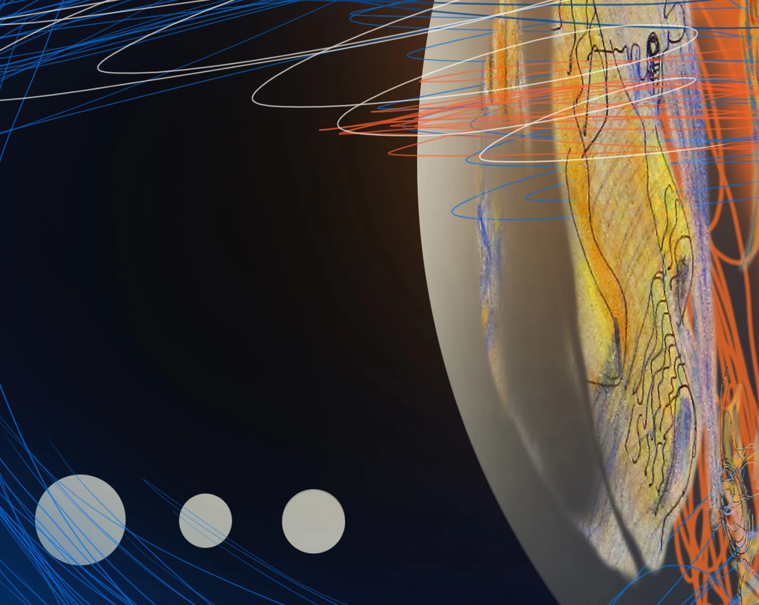 "View 2" is one of the three drawings initially included (in smaller size) into my sculpture "Images of the World". In the sculpture, where the drawing comes from, there are three human figures standing in front of a neutral white screen, and each of them projects an individual picture onto it. On the one hand, I raise the question of the power of personal, individual projection, the ability of each of us to color the world as we choose. On the other hand, it touches upon the topic of constantly changing common, conventional human pictures of the world, which we collectively project on the Universe.