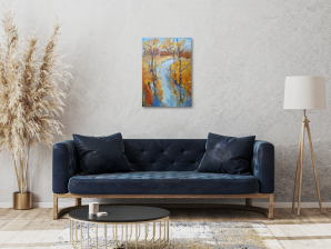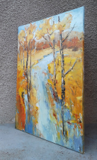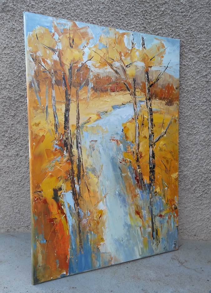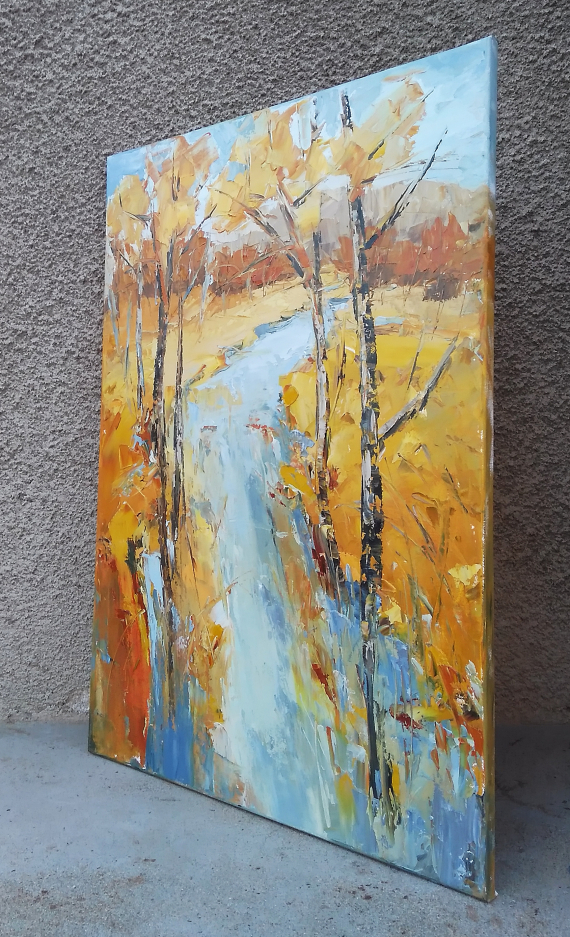 This original oil painting is made on stretched cotton canvas. Size is 50x70cm. Depth 1 cm. Canvas is gallery wrapped and painted on the sides, so the painting could be hang as it is without a frame if preferred.