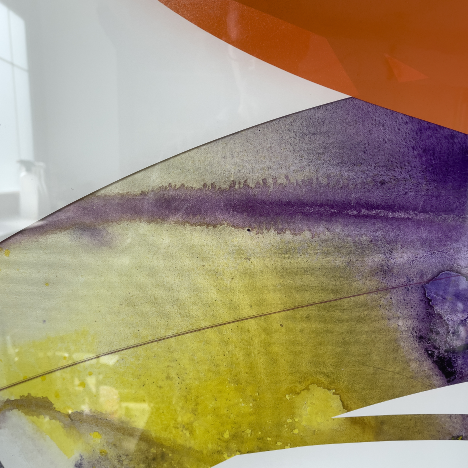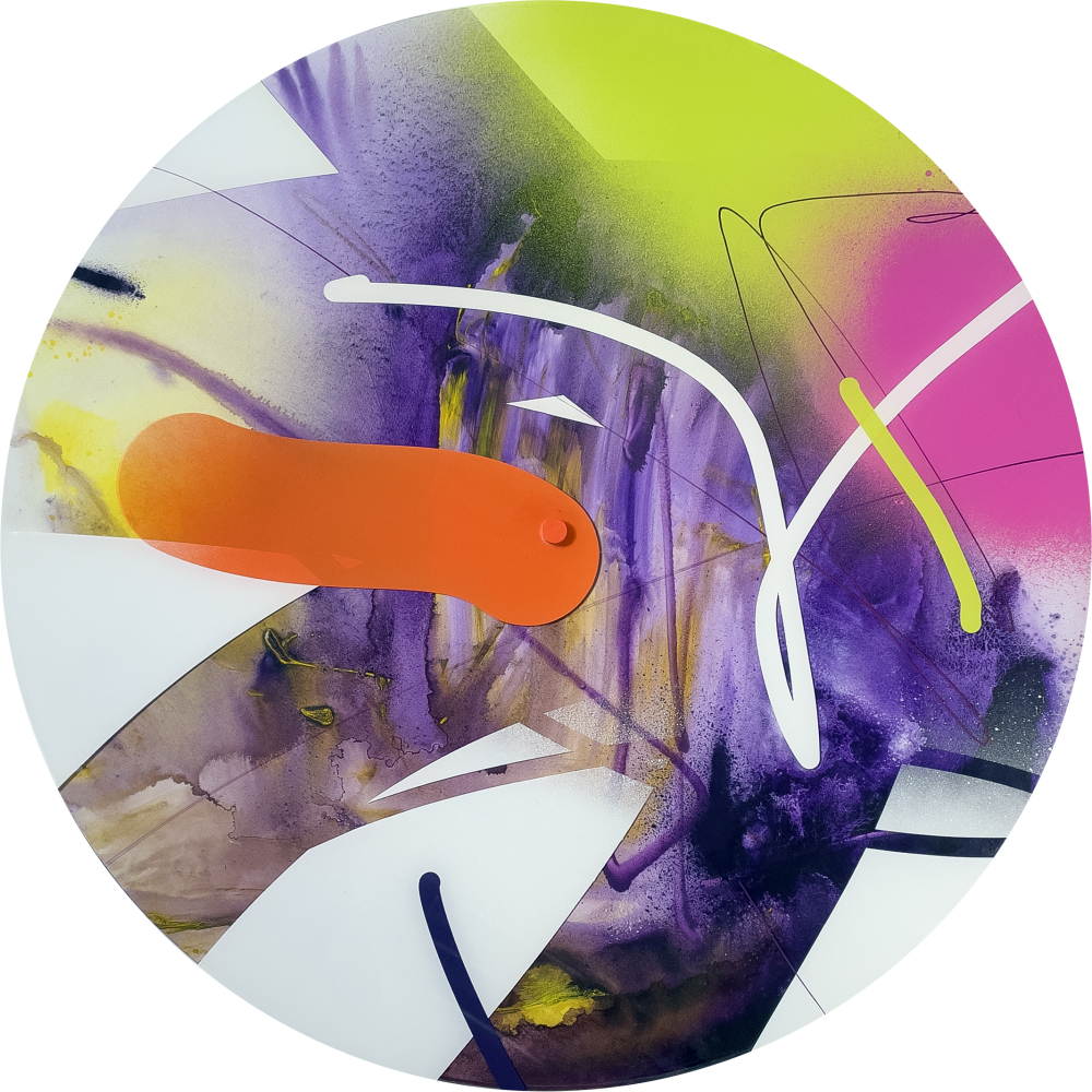 Inner Transformation is an interactive artwork composed of two layers – a circular canvas and a movable plexiglass panel, mounted on a central bearing and three side glide bearings that I specifically designed for this type of artwork. Both layers are hand-painted, and their mutual rotation creates ever-changing compositions. The piece symbolizes the continuous process of inner transformation that each of us experiences, and just as we are never the same person every day, this artwork is never the same either.