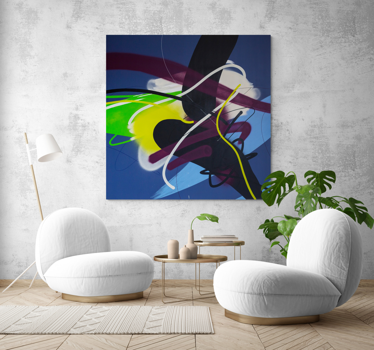 Martin is a creative artist who creates colorful artworks that can lift the mood in any area. His work is inspired by lines, where he develops various shapes into an abstract composition. There is no coincidence between the lines, because Martin carefully plans out every detail on his canvas. Through layering variant lines on an unbounded color area, he creates vibrant paintings. Get to know Martin more here.