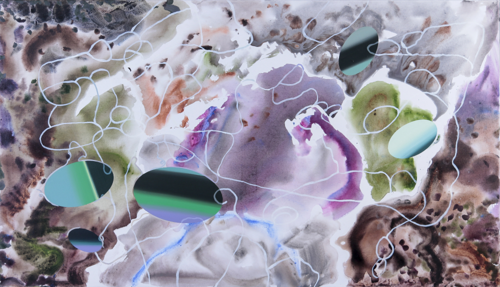 With this in mind, this cycle of paintings represents the collective memory of humanity with all its ups and downs. Focusing mainly on the bright, positive, and energetic strings of life which are occasionally tangled or cut with blurred and darker knots and circles, but then again untangled and all dancing in harmony into eternity. Once again elements representing eclipses of the universe appear in these paintings, symbolizing ever-present fate and cosmic presence influencing everything and everyone.