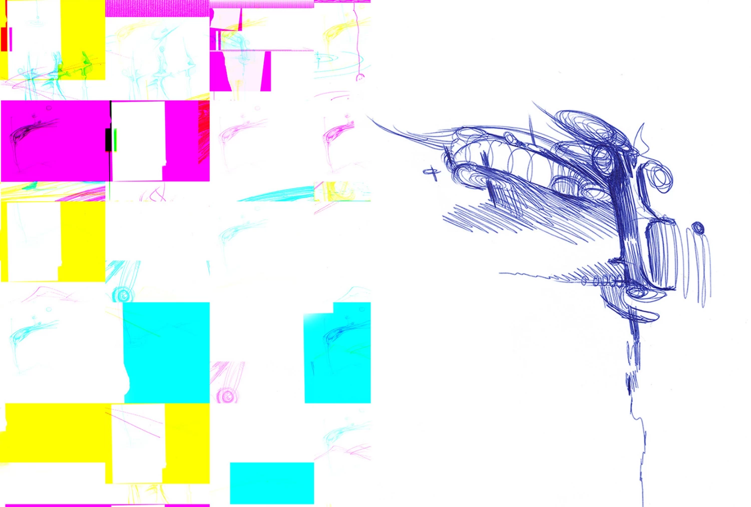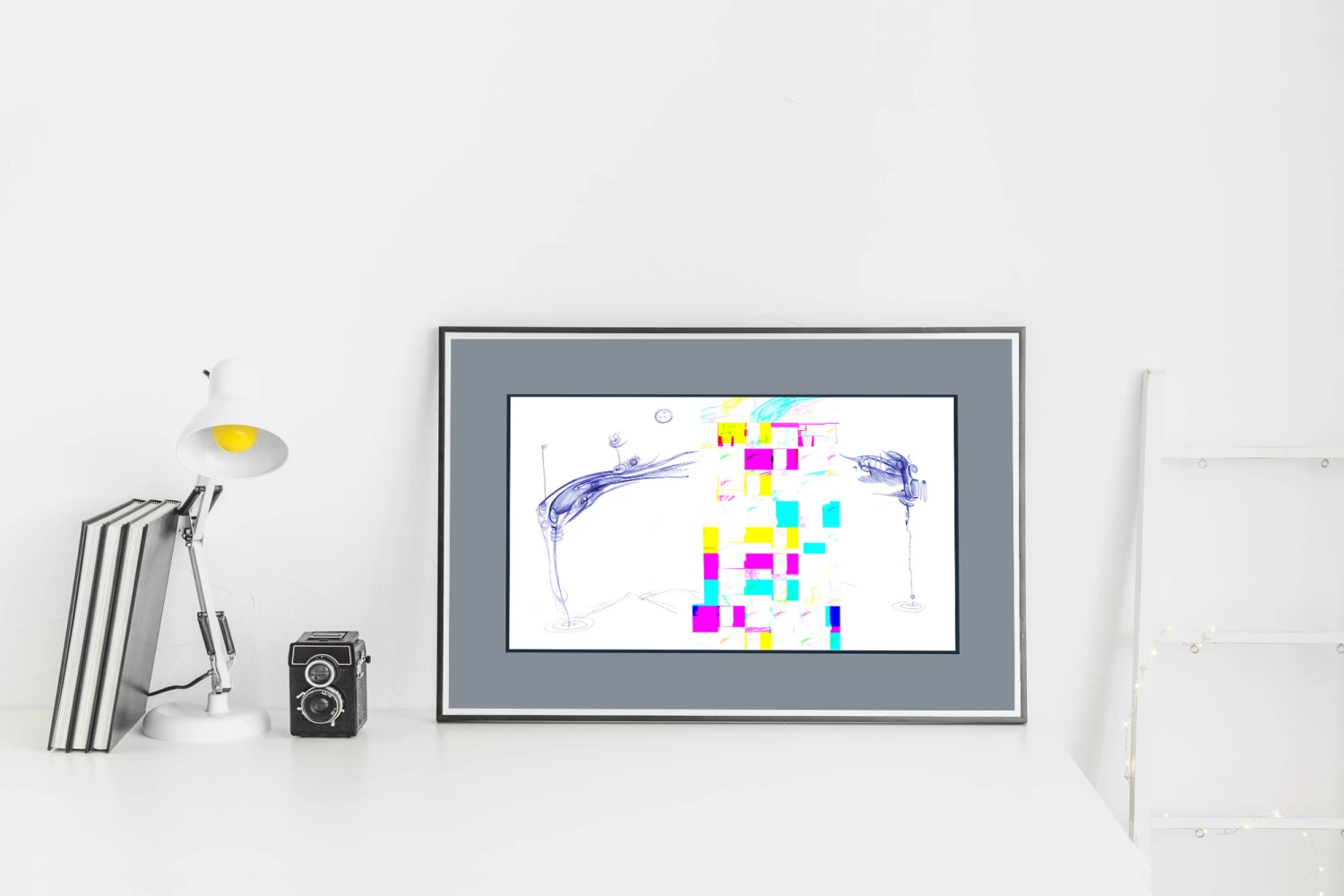 The work combines analog and digital techniques - the images are drawn by me by hand and supplemented with digital elements. To create the frames, I used the errors that my computer and graphic software gave me while working. For me, this is a metaphor of the fact that any identity, individuality is a set of unique deviations from the ideal, unique "mistakes" from which you build landscapes of your inner world.