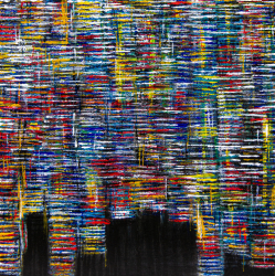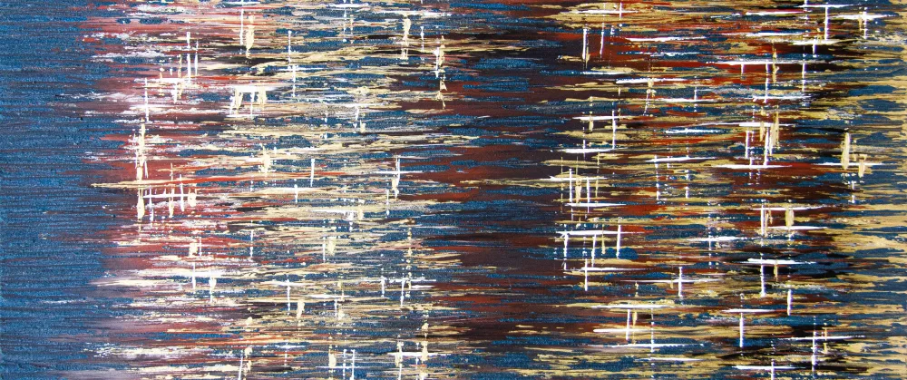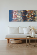 "Layers" is a textured piece with dominant shades of brown and gold and blue layers. The heavy textures and warm colour palette will instantly warm up any home or office area by introducing a great cosy energy.