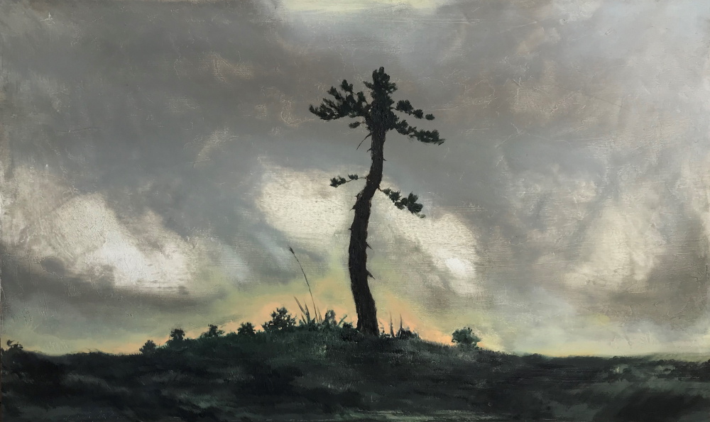 “Lonely Tree” is an oil painting which illustrates a tree on a cloudy day. The inspiration of this artwork is nature. It is a simple landscape but the colors create a unique atmosphere that makes you feel intense feelings.