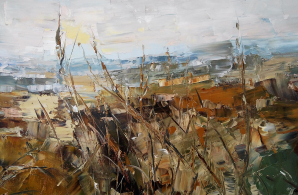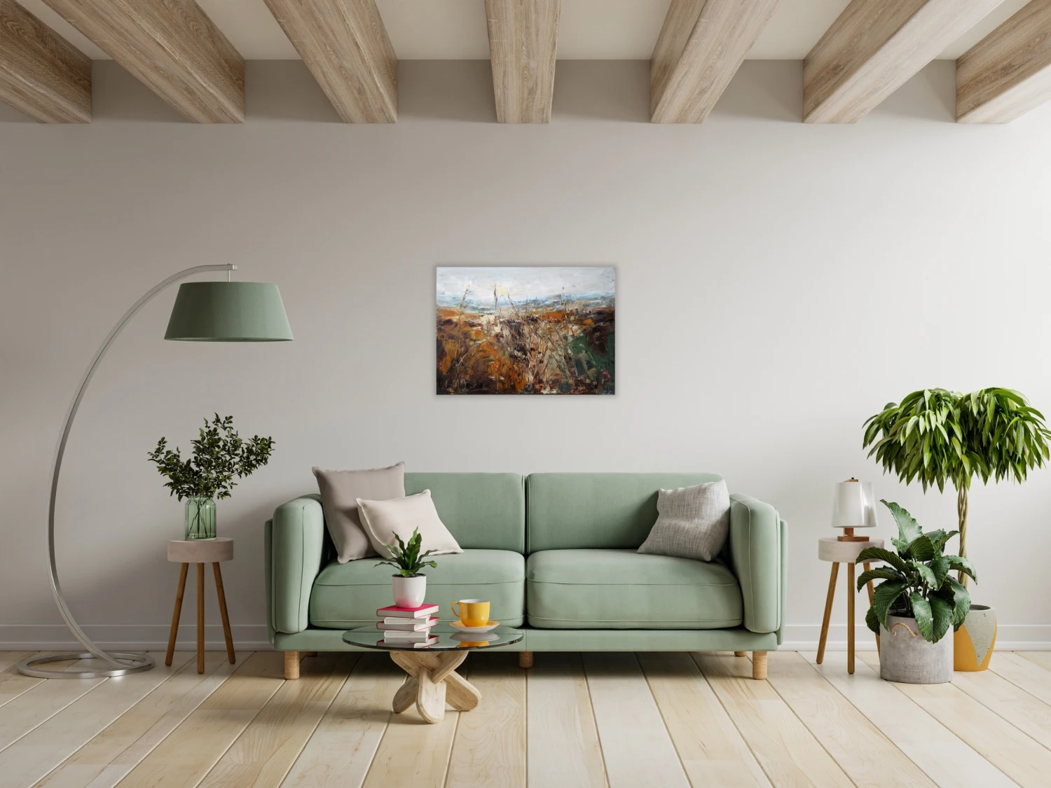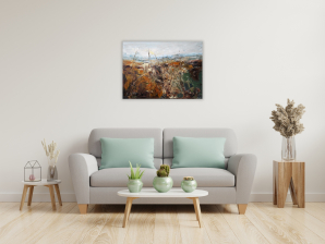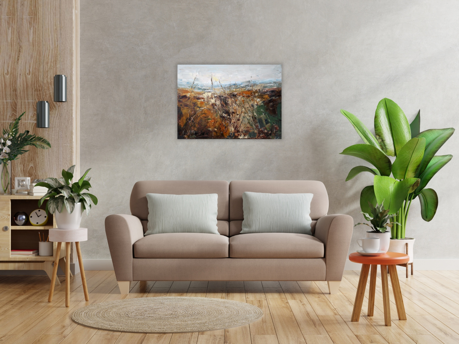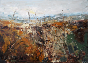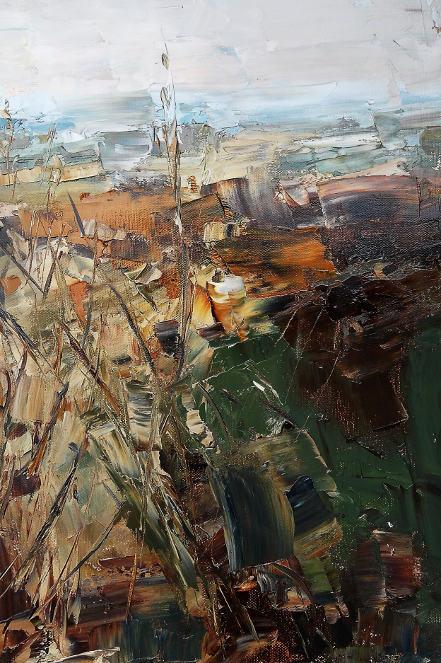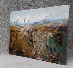 This painting is part of my field series. My freedom-loving personality was always been drawn by the fields. I love the feeling of endless, freedom and reverie that the fields evoke in me. I love painting them. While painting I feel the gentle wind playing all around me, I hear the whispers of the grass, I feel my soul floating towards the horizon… and I am happy. Hope you are too when looking at these paintings.