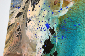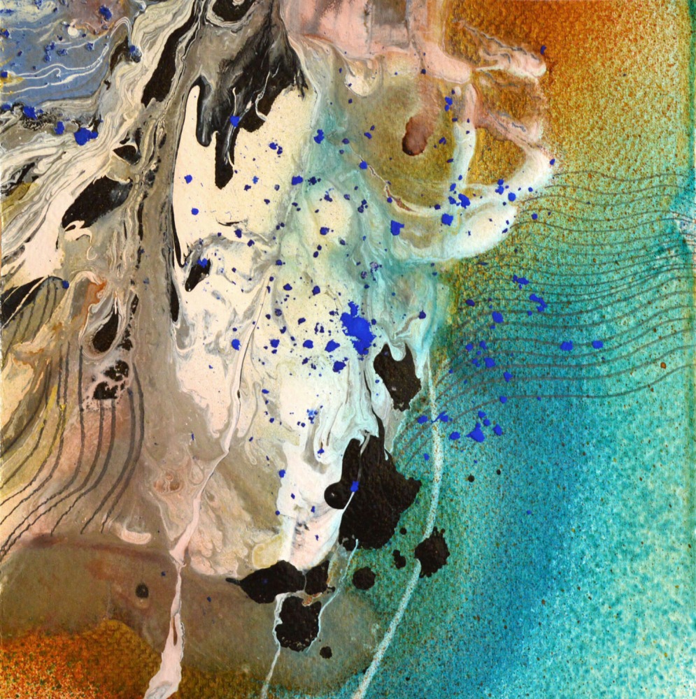 This series is inspired by the beauty of marble, its shapes, colors, and textures. I hope the viewers think about nature and let their imagination create their own worlds. I have used acrylics, watercolor, and spray paint to make different textures and marble effects.
