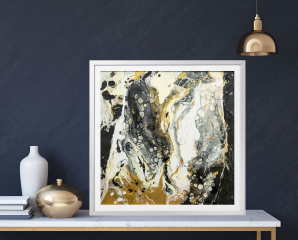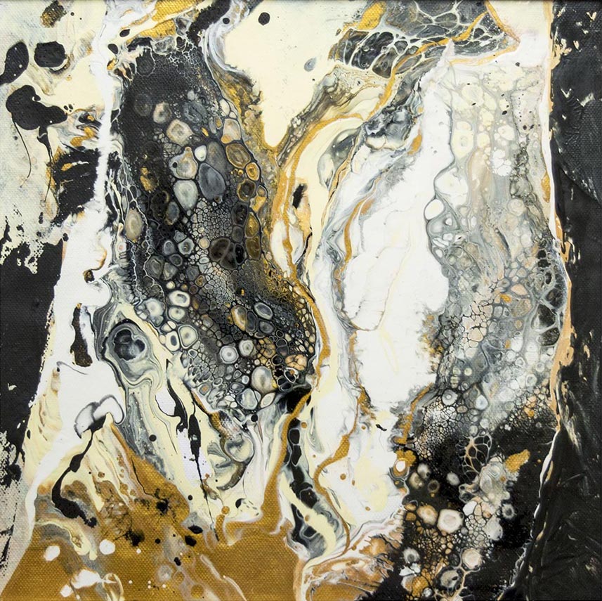 This series is inspired by the beauty of marble, its shapes, colors, and textures. I hope the viewers think about nature and let their imagination create their own worlds. I have used acrylics, watercolor, and spray paint to make different textures and marble effects.
