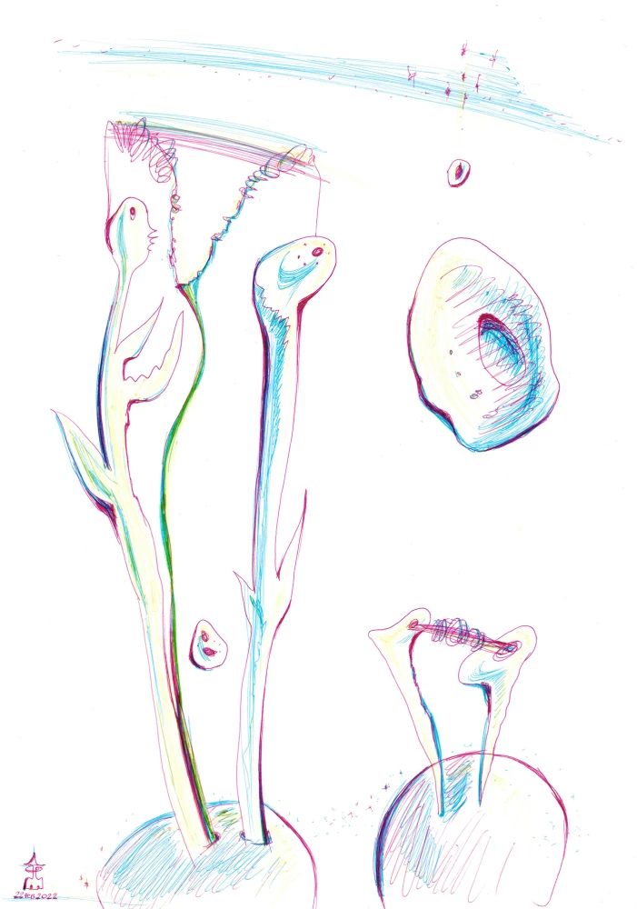 This original handmade drawing belongs to my "Metaphysical Diary". I've been keeping this Diary for more than 11 years, since 2011. These are kind of travel lists, my personal notes from wanderings in my own fantasy world or metaphysical reality. In flow drawing, I capture subtle landscapes, reflect my current states, construct my own symbols, build fragile elusive worlds. It's an interesting journey that I'd like to share – traveling in a parallel Universe which is not seen to the eye and revealing it .